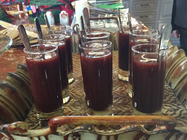 As celebratory as it is to serve champagne, a margarita also lends itself to creative variations, and is a great way to start the evening. These were a big hit at a Kitchen Goddess dinner party. I took time the day before and added red food coloring to my rimming salt; the effect of the red salt with the green lime zest brought out the “Ho-ho-ho” in everyone.